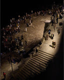 “Anima Dorica”, deniz kıyısındaki merdivenlerin ruhunu müzik ve ışıkla anlatan bir hikaye kurguluyor. Ginés’in ifadesiyle bu hikaye, denizde yaşayan meraklı bir ruhun, merdivenleri fark edip karaya yaklaşma isteğiyle başlıyor. Piyano arpejleriyle yukarıya doğru bir hareket hissi yaratılırken, saksafon sesi bu yolculuğa neşe katıyor. Ruh, merdiven boyunca ışıkla oyunlar oynayarak mekandaki güzelliği keşfediyor; sonunda ise denize dönmeden önce geride bir iz bırakıyor. Işık, müzik ve mimarinin bir arada kurgulandığı bu sahneleme, izleyiciyi keşif, oyun ve dönüş arasındaki büyüleyici bir yolculuğa davet ediyor.