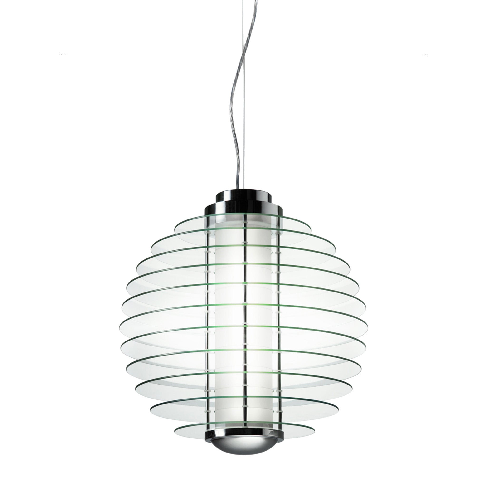 Gio Ponti’nin 1933’te tasarladığı 0024, temperli camdan yatay disklerin bir araya gelmesiyle heykelsi bir ışık düzeni oluşturuyor. Şeffaf camın berraklığı ışığı zarifçe yayarak mekana güçlü bir kimlik kazandırıyor. Zamansız çizgisiyle bulunduğu her alanda sofistike bir atmosfer yaratıyor.