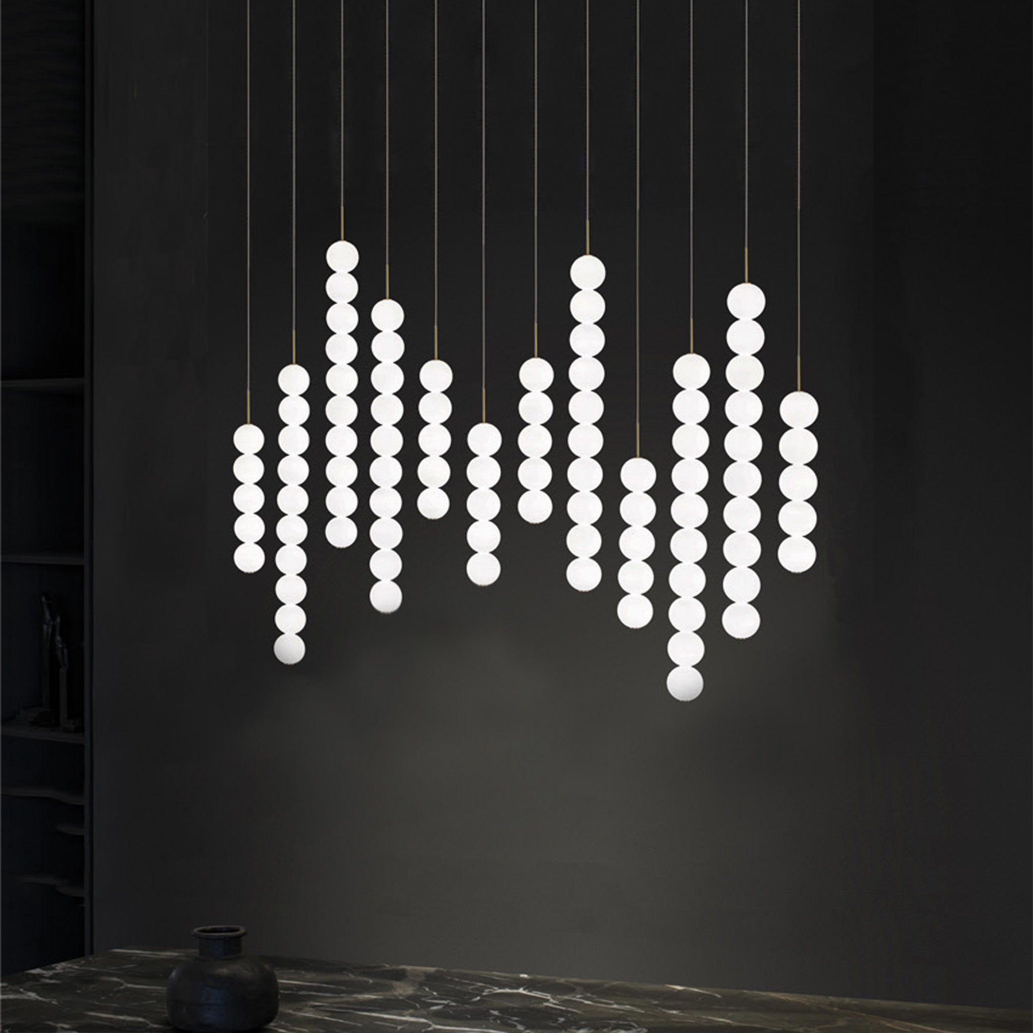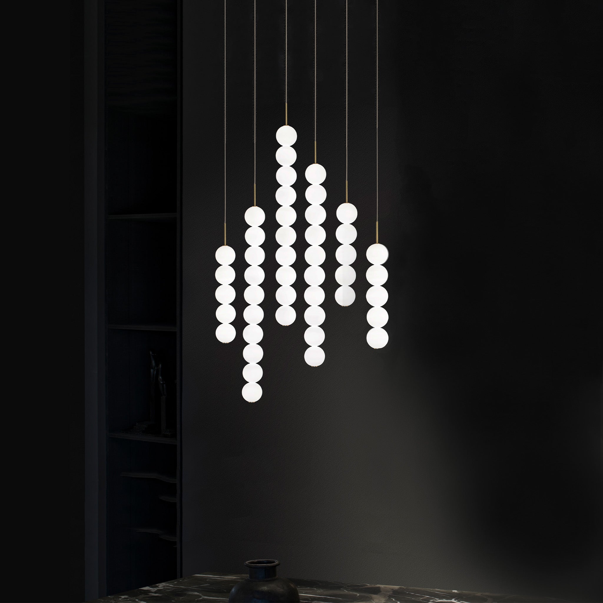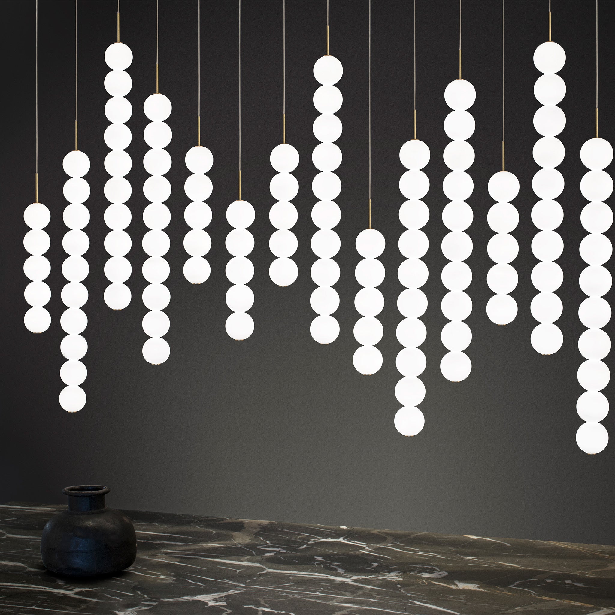 Abacus, yüzyıllar boyunca matematiği öğretmek ve aktarmak için kullanılan abaküsün zarif sadeliğinden esinlenerek Terzani’nin ustaları tarafından yeniden yorumlanıyor. El yapımı yuvarlak opal cam kürelerden oluşan her bir modül, yumuşak ve homojen bir ışık yayıyor ve farklı kombinasyonlarla bir araya gelerek mekana etkileyici bir ışık senaryosu katıyor.