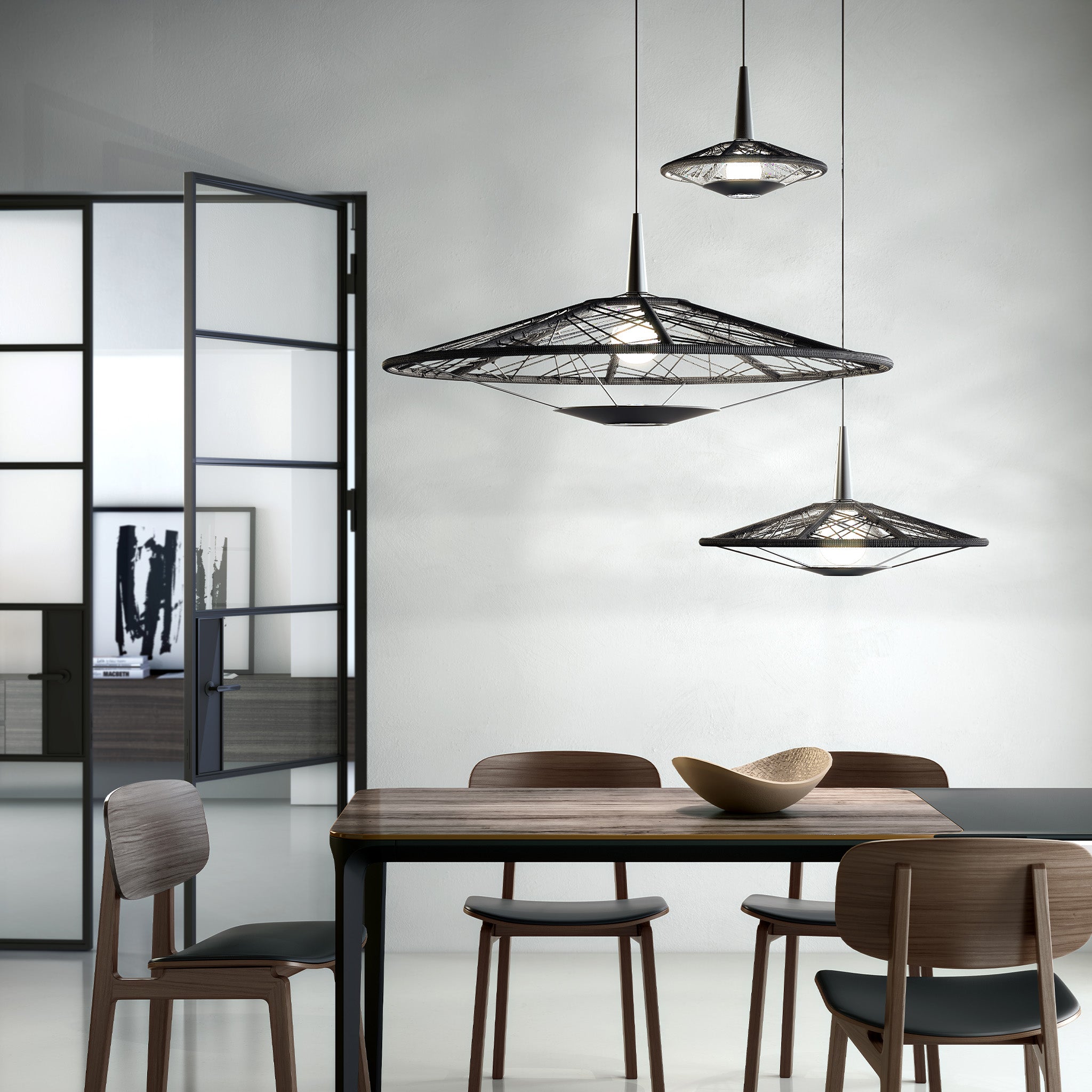 Jette Scheib tasarımı Carpa koleksiyonunun sarkıtı, ince çizgilerle tanımlanan çokgen yapısıyla zarafetini öne çıkarıyor. Yarı şeffaf formu sayesinde mekânda hafif bir duruş sergileyen tasarım, ışığı yumuşak ve zarif bir şekilde yayıyor. Üç farklı boy seçeneğiyle sunulan Carpa sarkıt, oturma odasından çalışma alanlarına kadar her ortamda zarif ve şiirsel bir atmosfer yaratıyor.