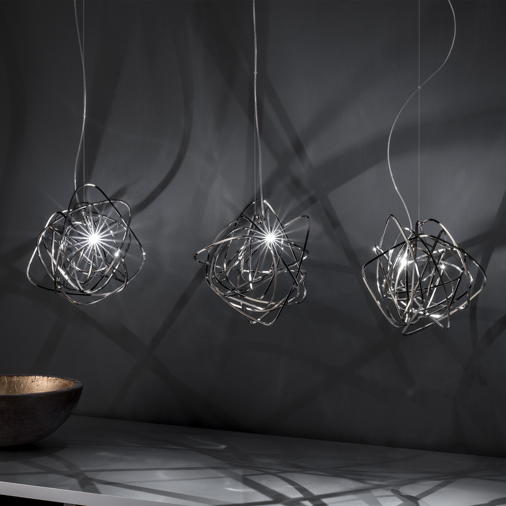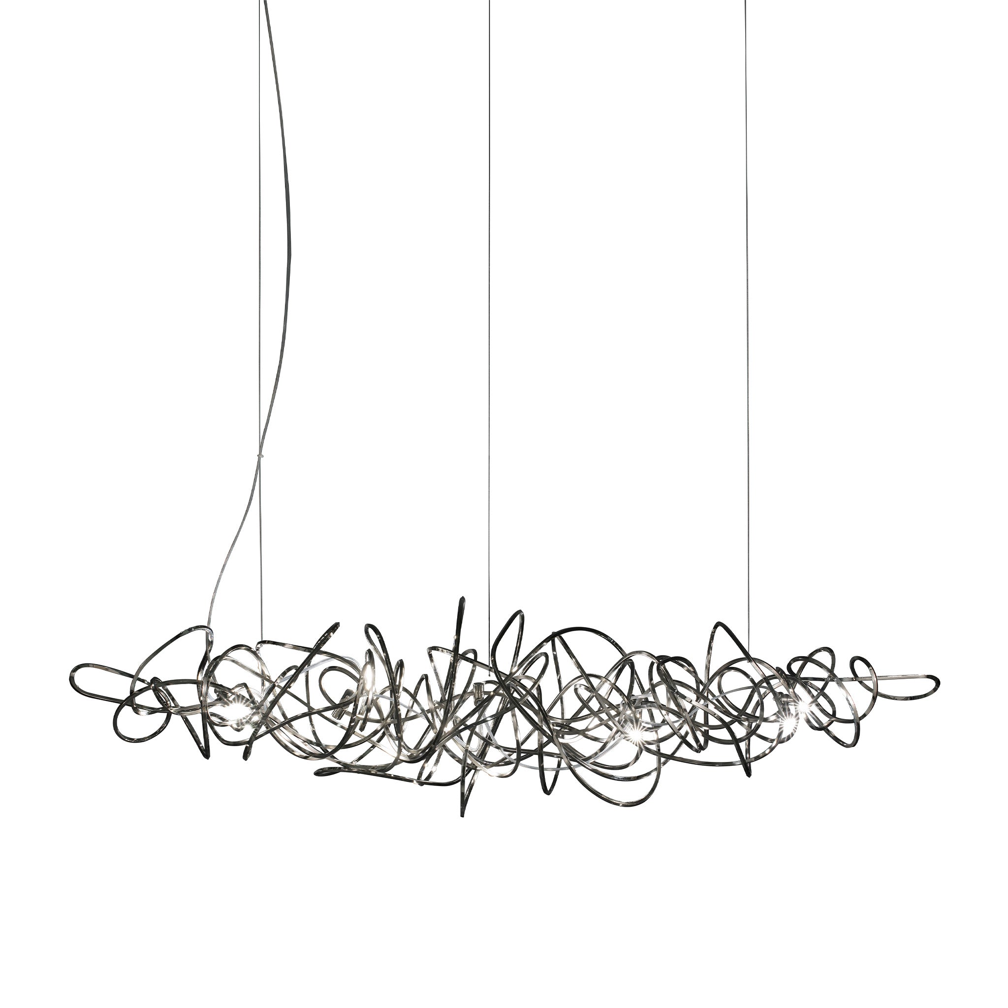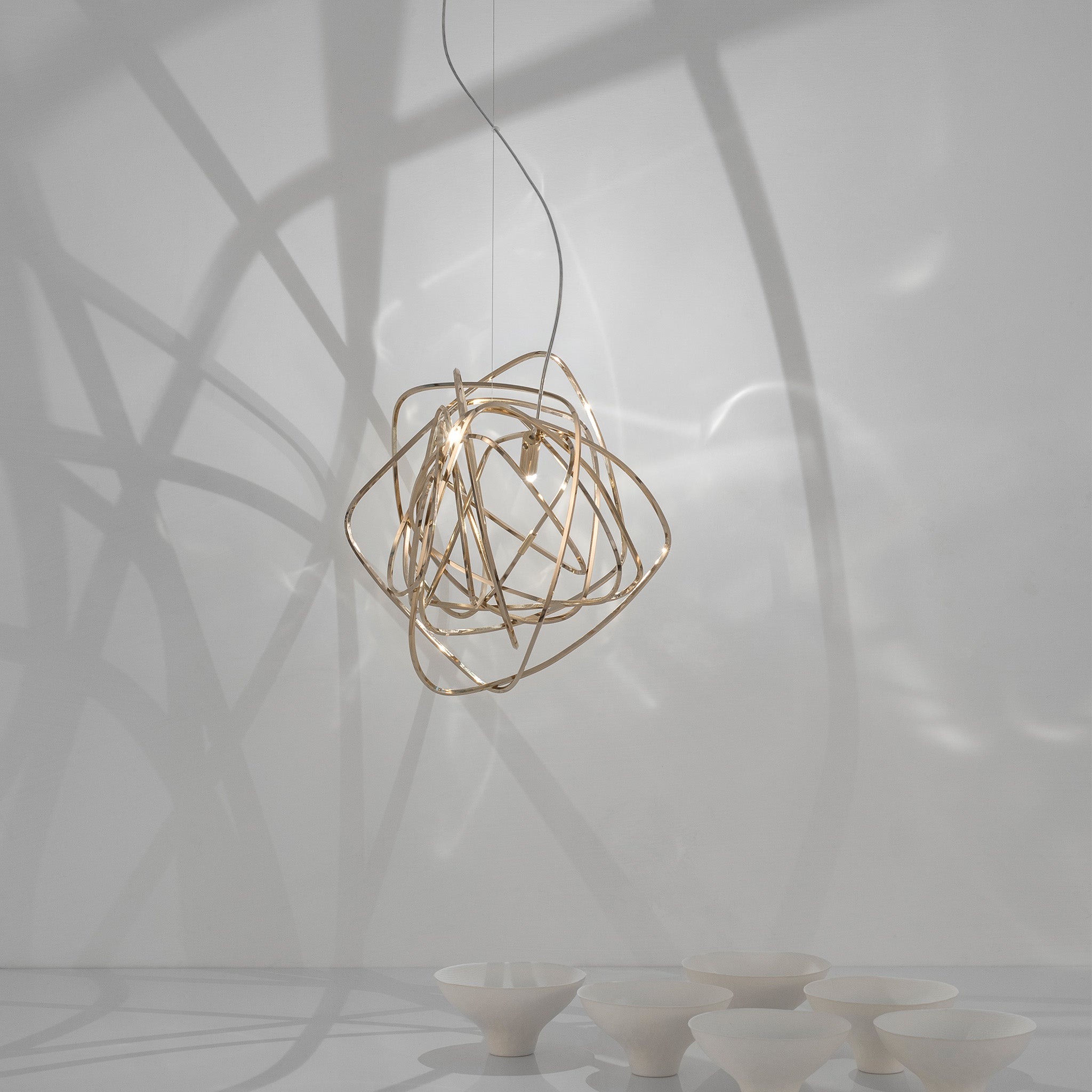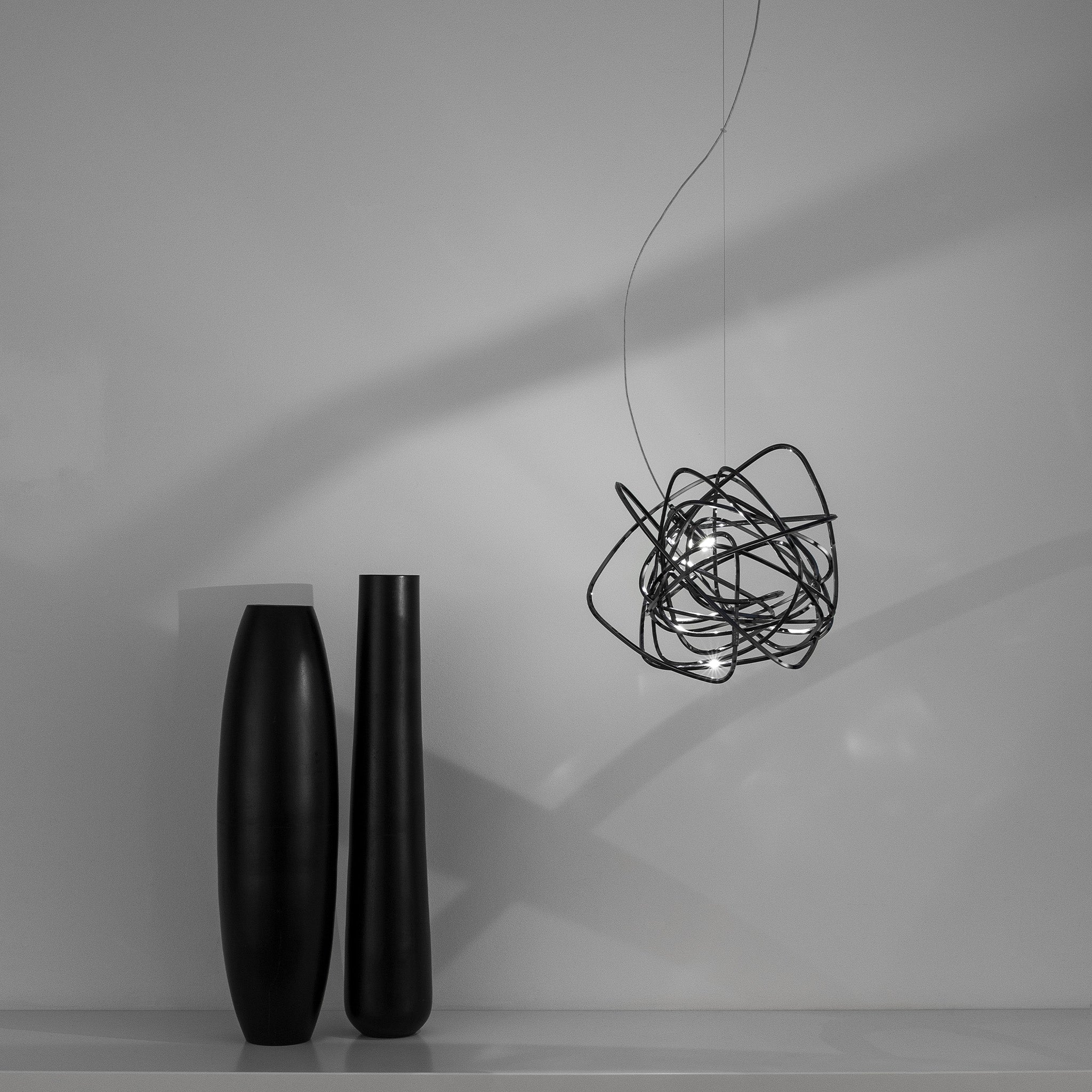 Simone Micheli imzalı Doodle sarkıt, yaşamın karmaşık ama özgür akışını rastgele kıvrımlar aracılığıyla ışığa dönüştürüyor. El işçiliğiyle şekillenen her parça benzersiz olup, LED ampuller istenilen noktaya yerleştirilebiliyor. Doodle, kullanıcısına hem görsel esneklik hem kişisel ifade alanı sunuyor. Nikel, siyah nikel, altın ve bakır kaplama seçenekleriyle çağdaş mekânlara dinamik bir enerji katıyor.