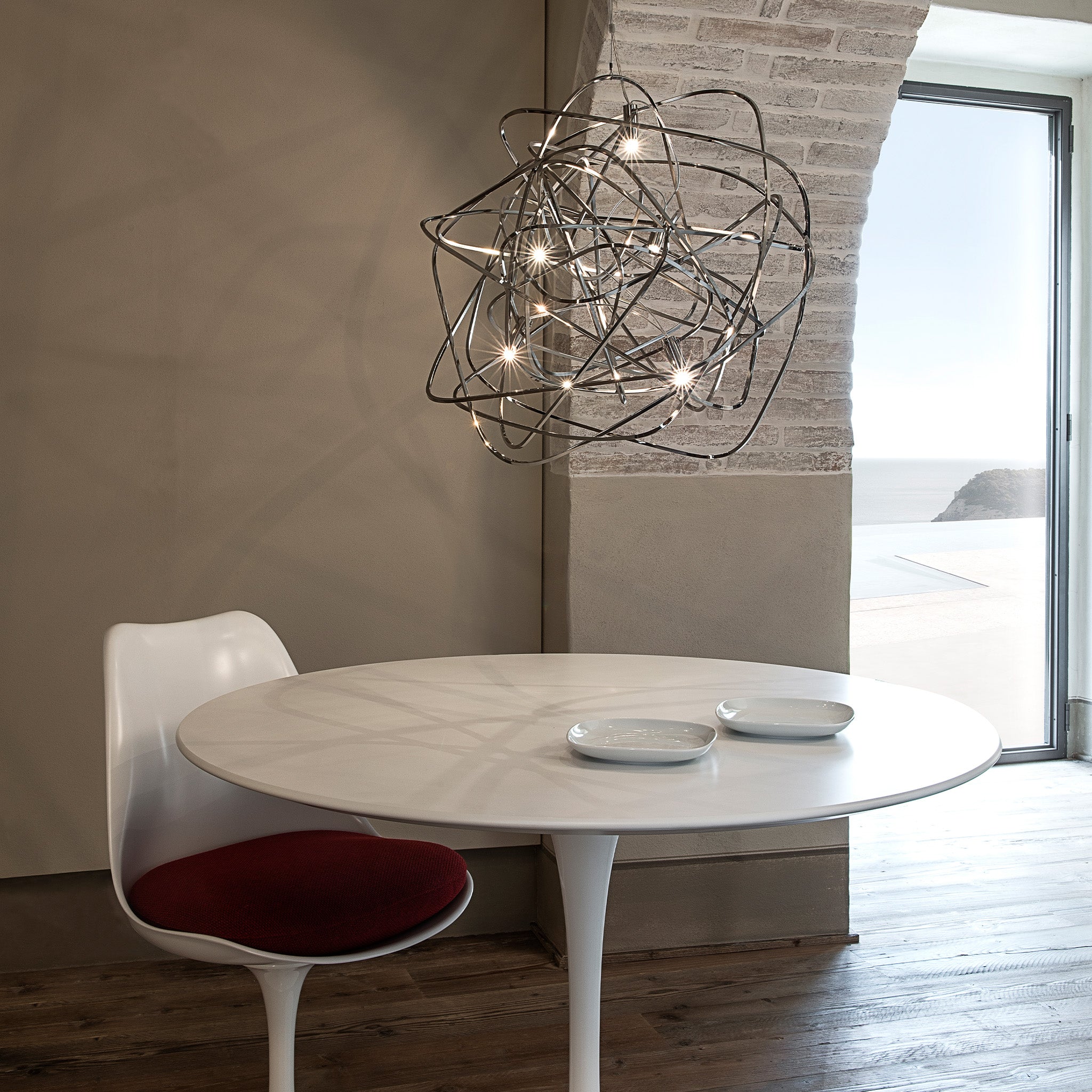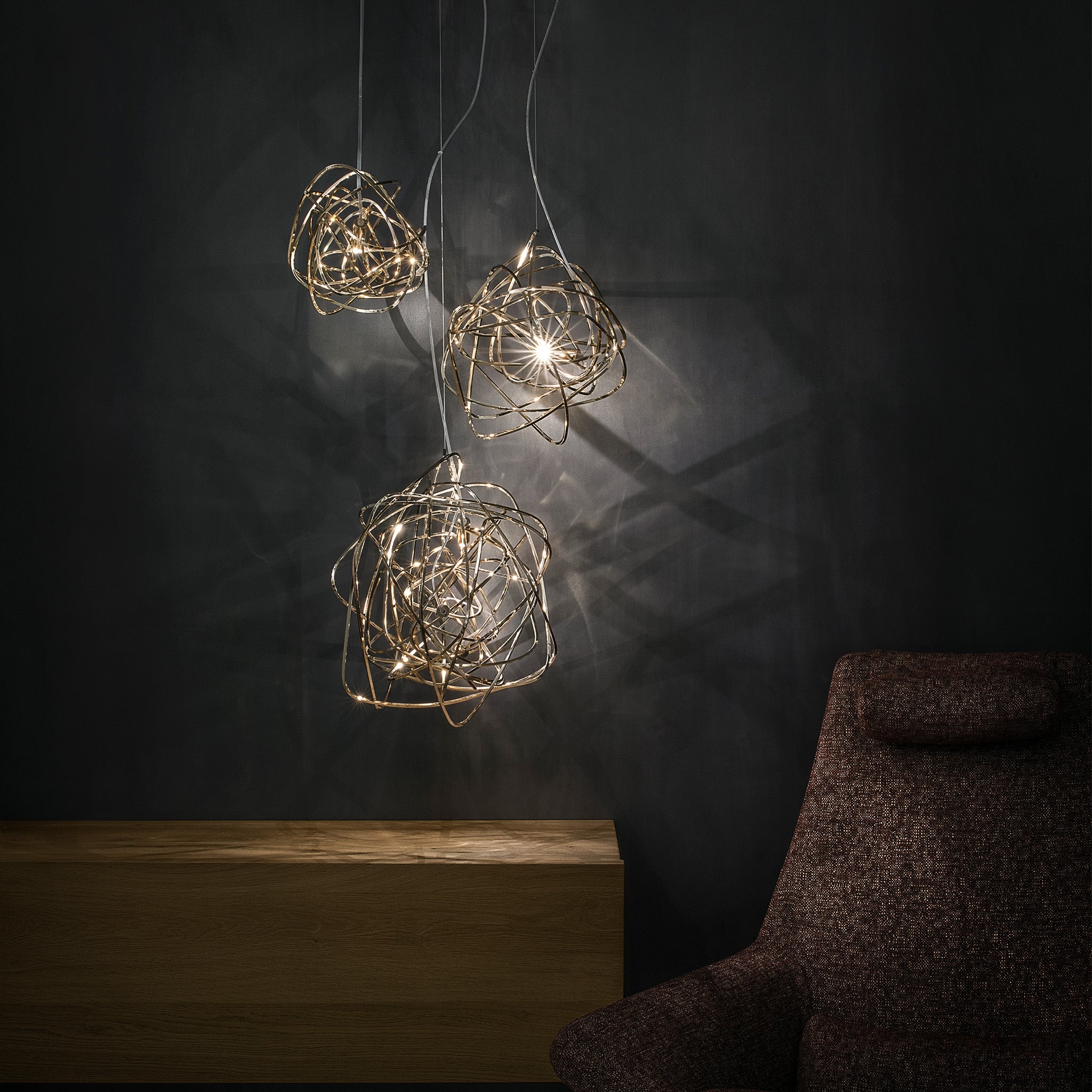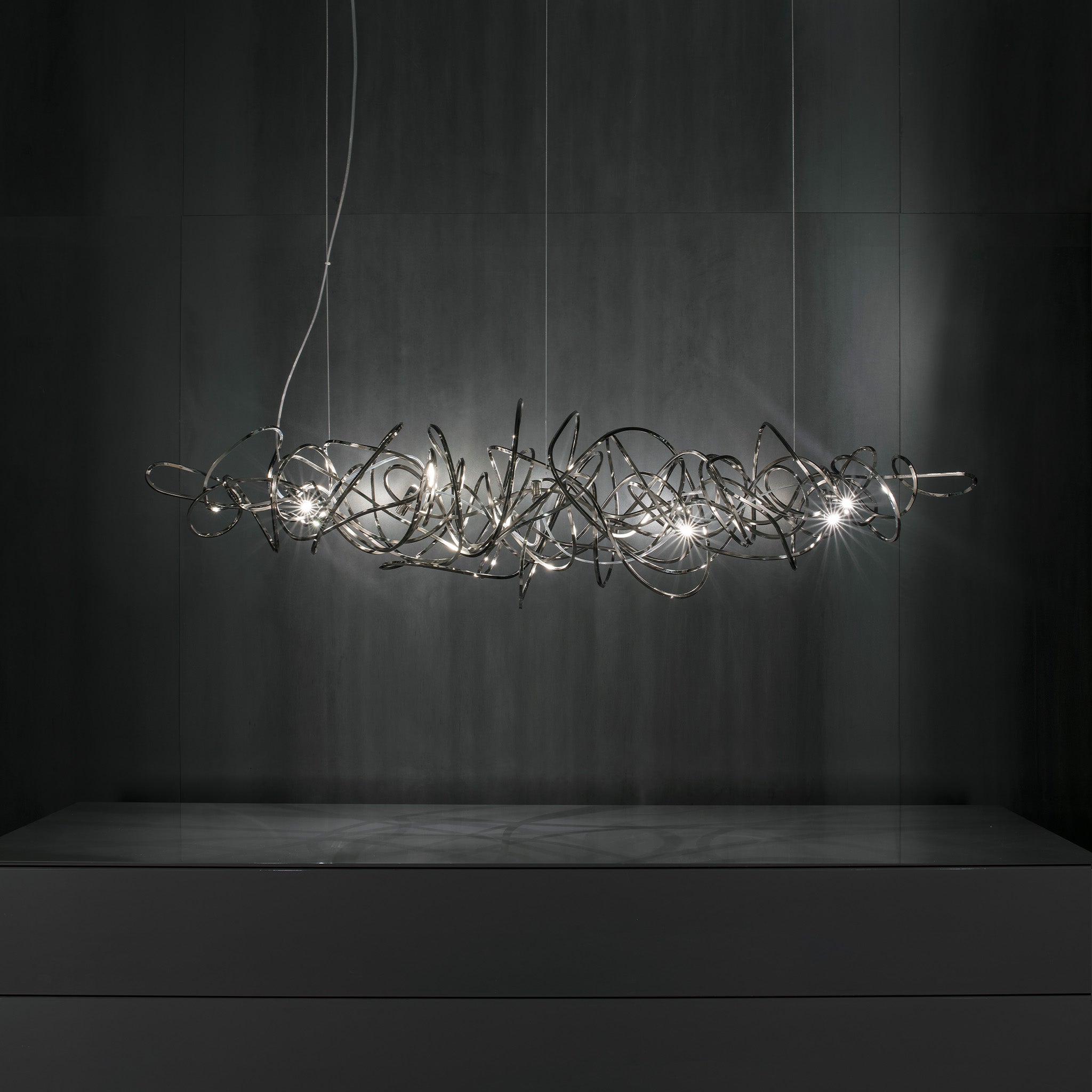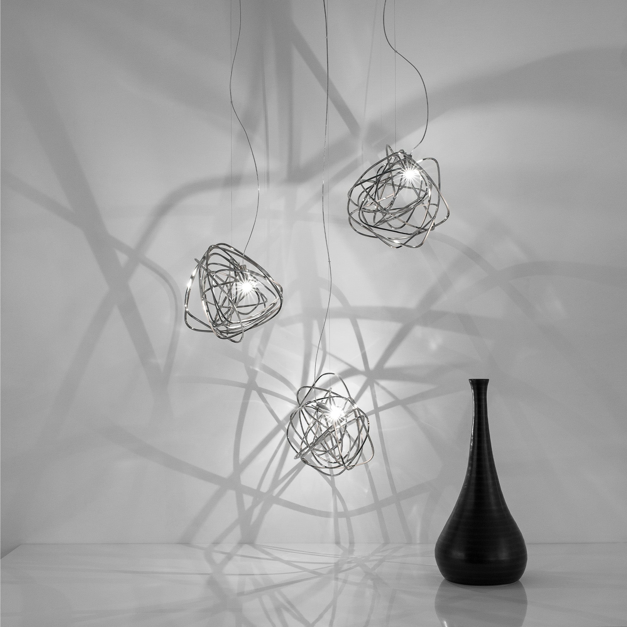 Simone Micheli imzalı Doodle sarkıt, yaşamın karmaşık ama özgür akışını rastgele kıvrımlar aracılığıyla ışığa dönüştürüyor. El işçiliğiyle şekillenen her parça benzersiz olup, LED ampuller istenilen noktaya yerleştirilebiliyor. Doodle, kullanıcısına hem görsel esneklik hem kişisel ifade alanı sunuyor. Nikel, siyah nikel, altın ve bakır kaplama seçenekleriyle çağdaş mekânlara dinamik bir enerji katıyor.
