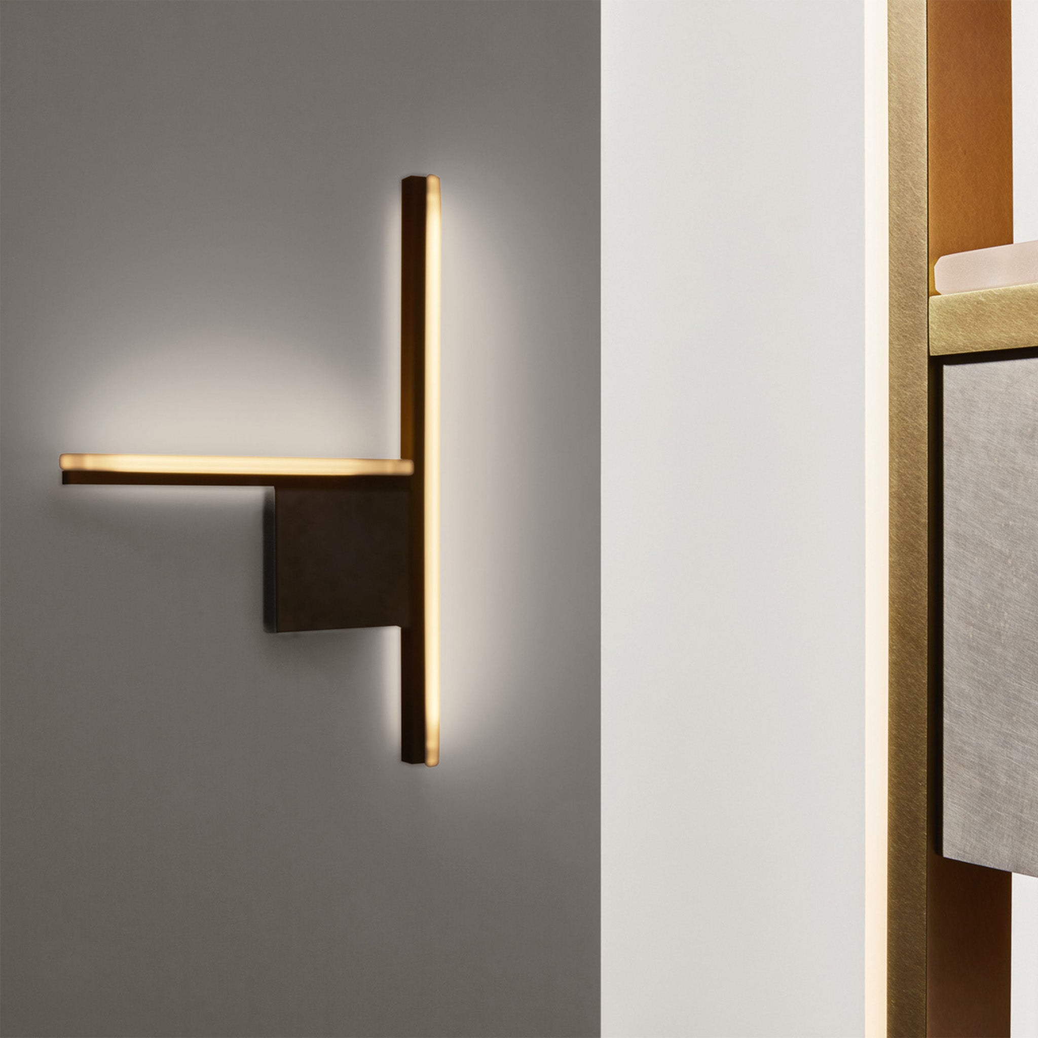 Essence’ın sade kare formu köşelerinden yayılan sıcak ışıkla çevreyi yumuşak bir parlama içine alıyor. Merkezde yer alan plakadan dışa doğru uzanan dört kolun oluşturduğu simetrik kompozisyon yüzeyde ışık ve gölge arasında rafine bir kontrast yaratıyor. Kalay, antik bakır ve mat siyah nikel gibi seçkin malzemeler tasarımın dokusunu daha belirgin ve hissedilir kılıyor.