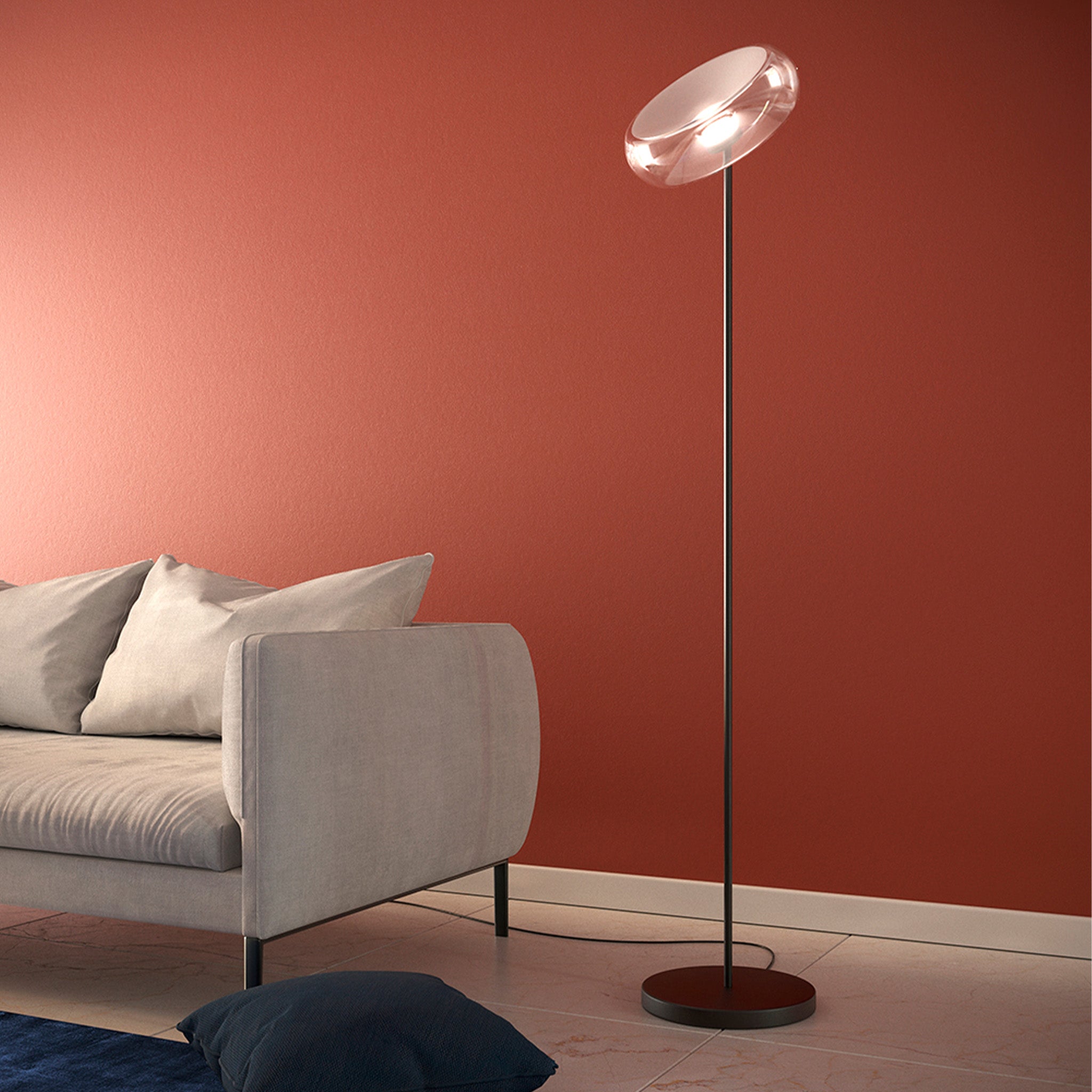 Cristian Li Voi’nin tasarımı Fold, camın zarafetini teknik detaylarla birleştiriyor. El üfleme cam gövdesindeki merkezi kıvrım, sade görünümünün ardında güçlü bir tasarım derinliği barındırıyor. LED ışık kaynağının ısısını dağıtan metal silindir, cam formun içine ustalıkla entegre edilerek işlevsel bir unsuru estetik bir detaya dönüştürüyor.