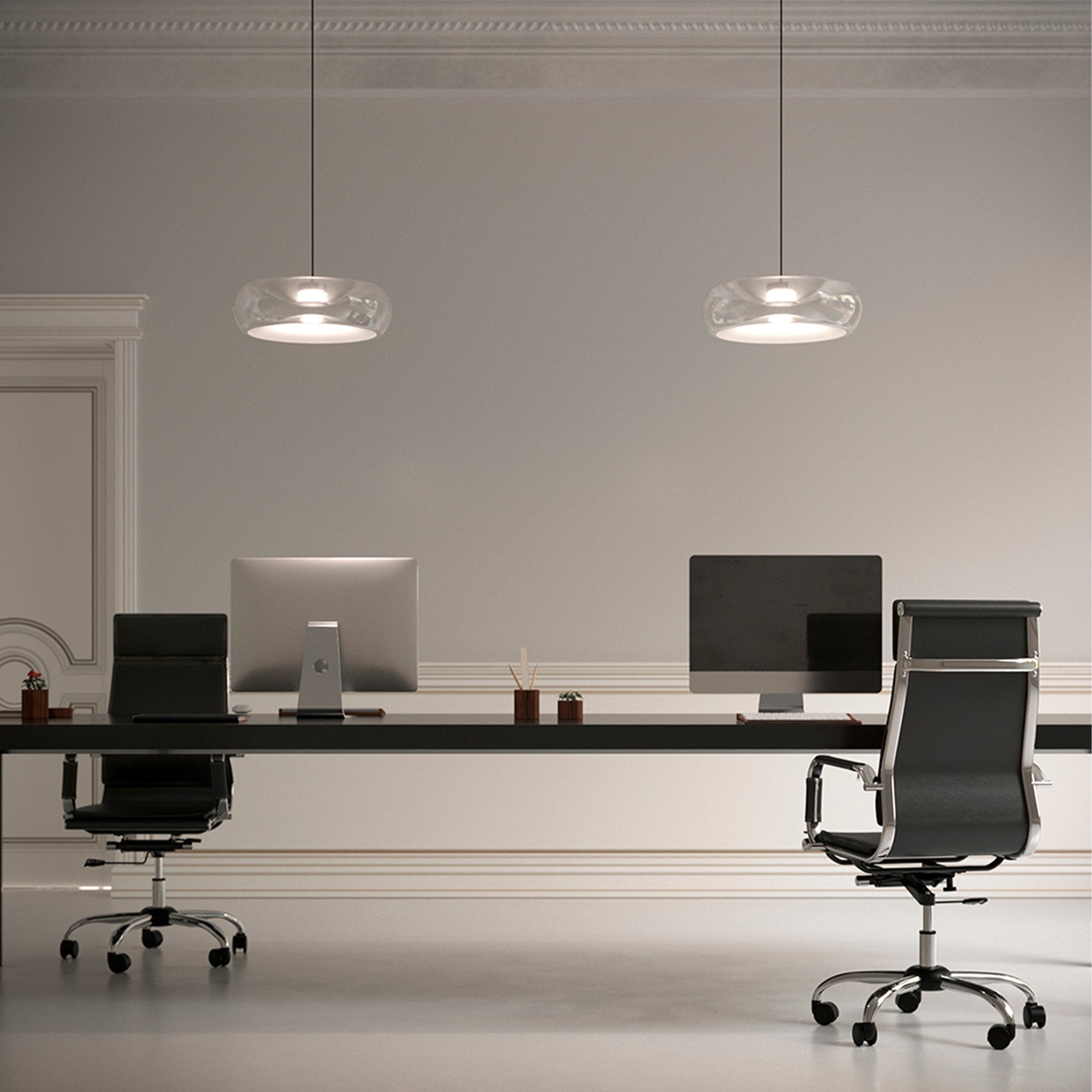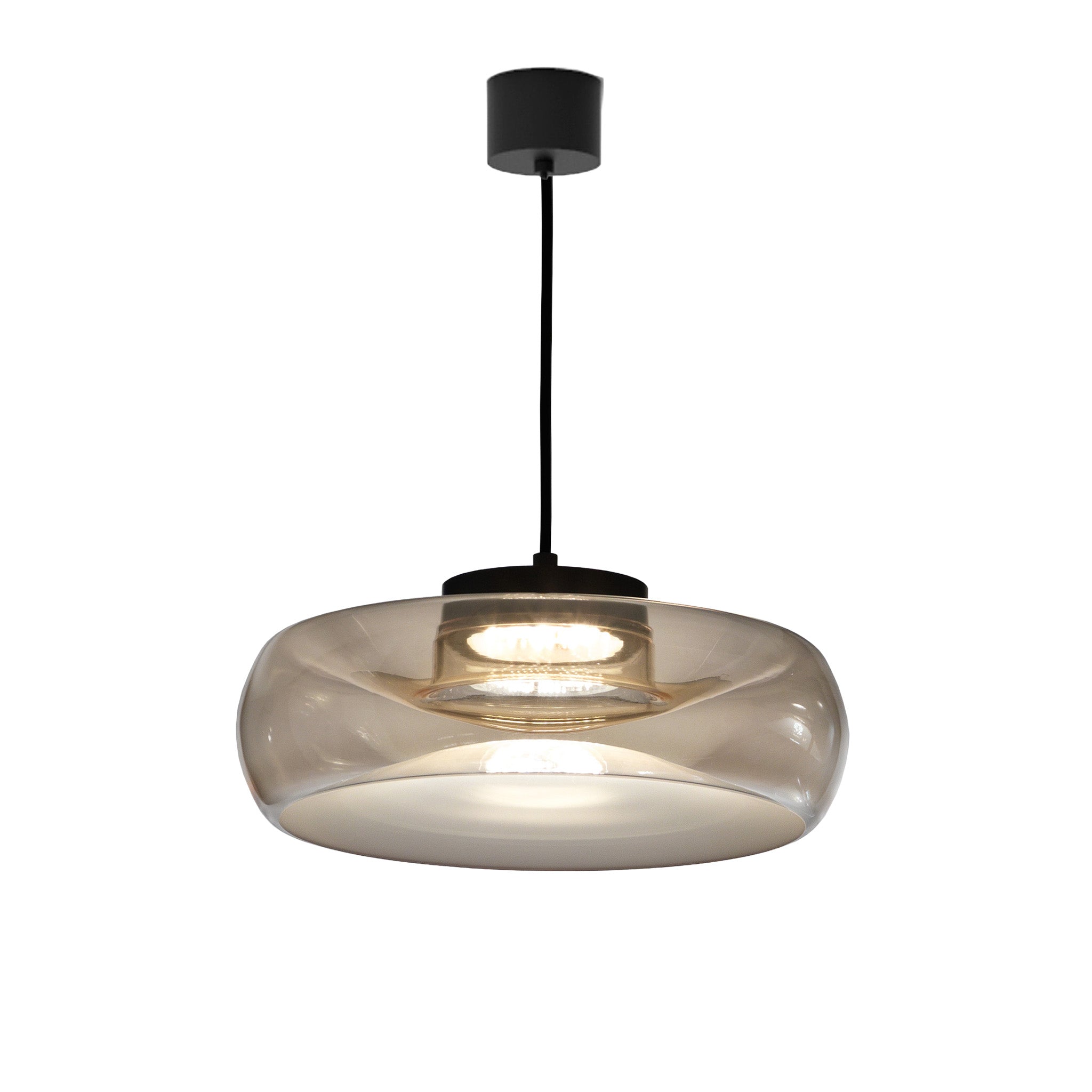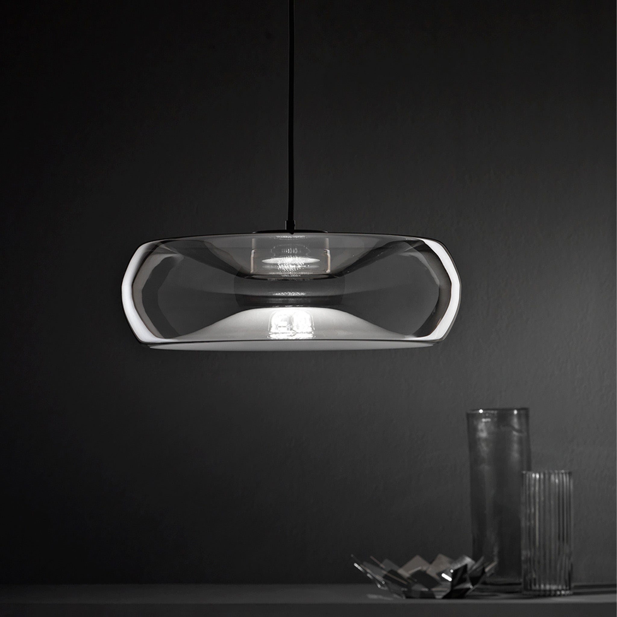 Cristian Li Voi’nin tasarımı Fold, camın zarafetini teknik detaylarla birleştiriyor. El üfleme cam gövdesindeki merkezi kıvrım, sade görünümünün ardında güçlü bir tasarım derinliği barındırıyor. LED ışık kaynağının ısısını dağıtan metal silindir, cam formun içine ustalıkla entegre edilerek işlevsel bir unsuru estetik bir detaya dönüştürüyor.