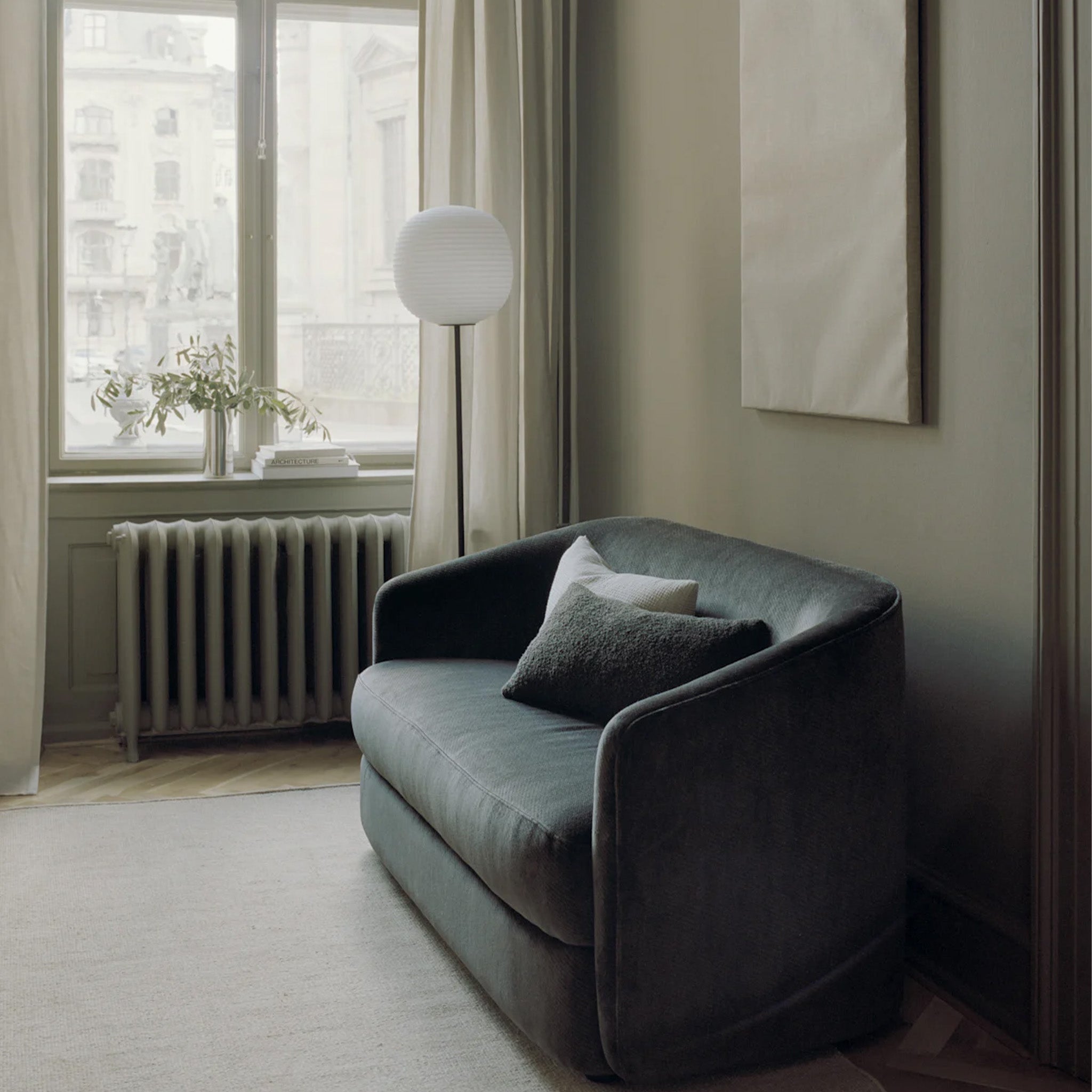 Anderssen & Voll tarafından tasarlanan Lantern, Japon pirinç kağıdı fenerlerinden ilham alarak seriyi yere taşıyor. Buzlu cam yüzeyiyle hafif ve yumuşak bir aydınlık oluşturuyor. Siyah çelik kaidesi, cam formu ön plana çıkararak ışığın sıcak parıltısını mekanda dengeli bir biçimde yükseltiyor.