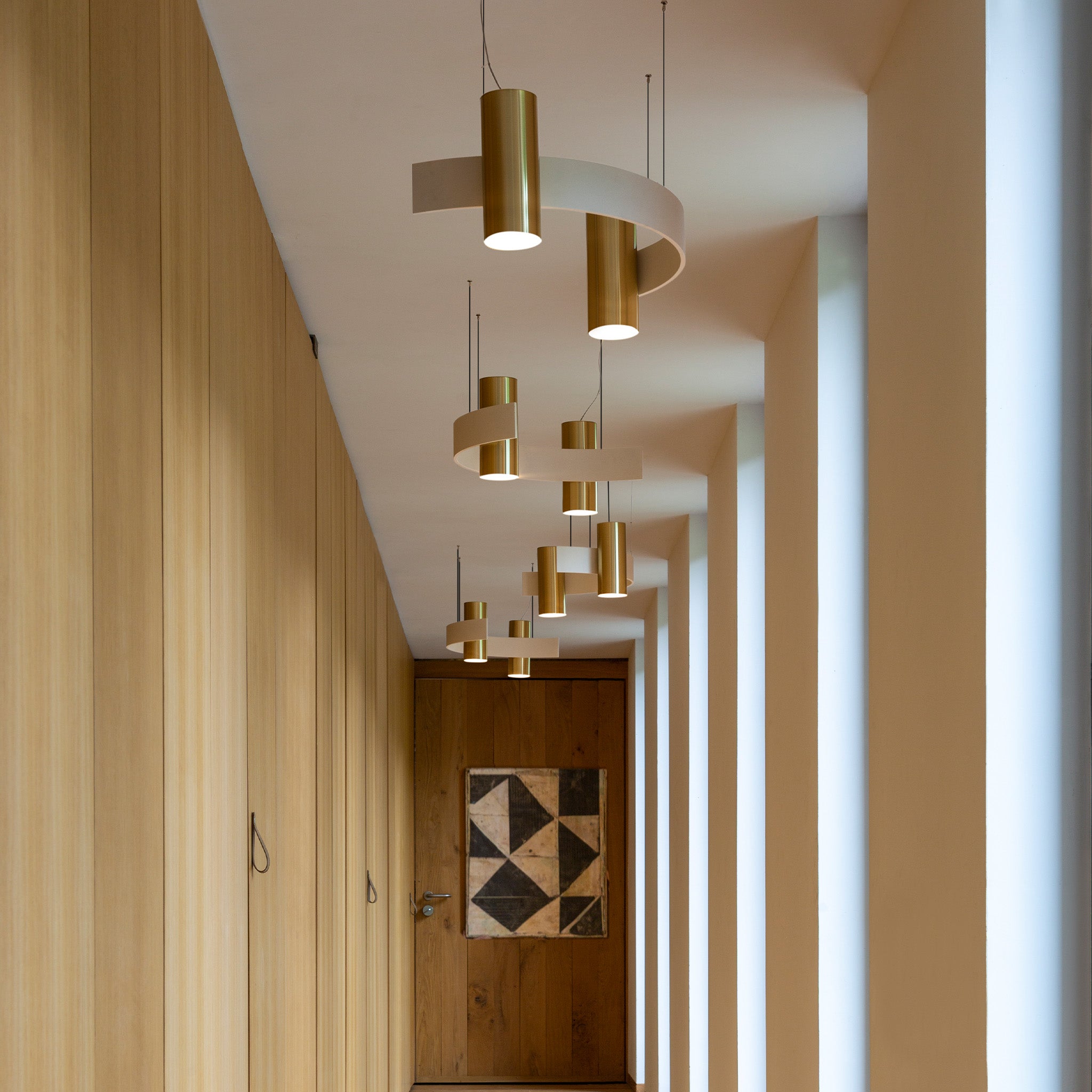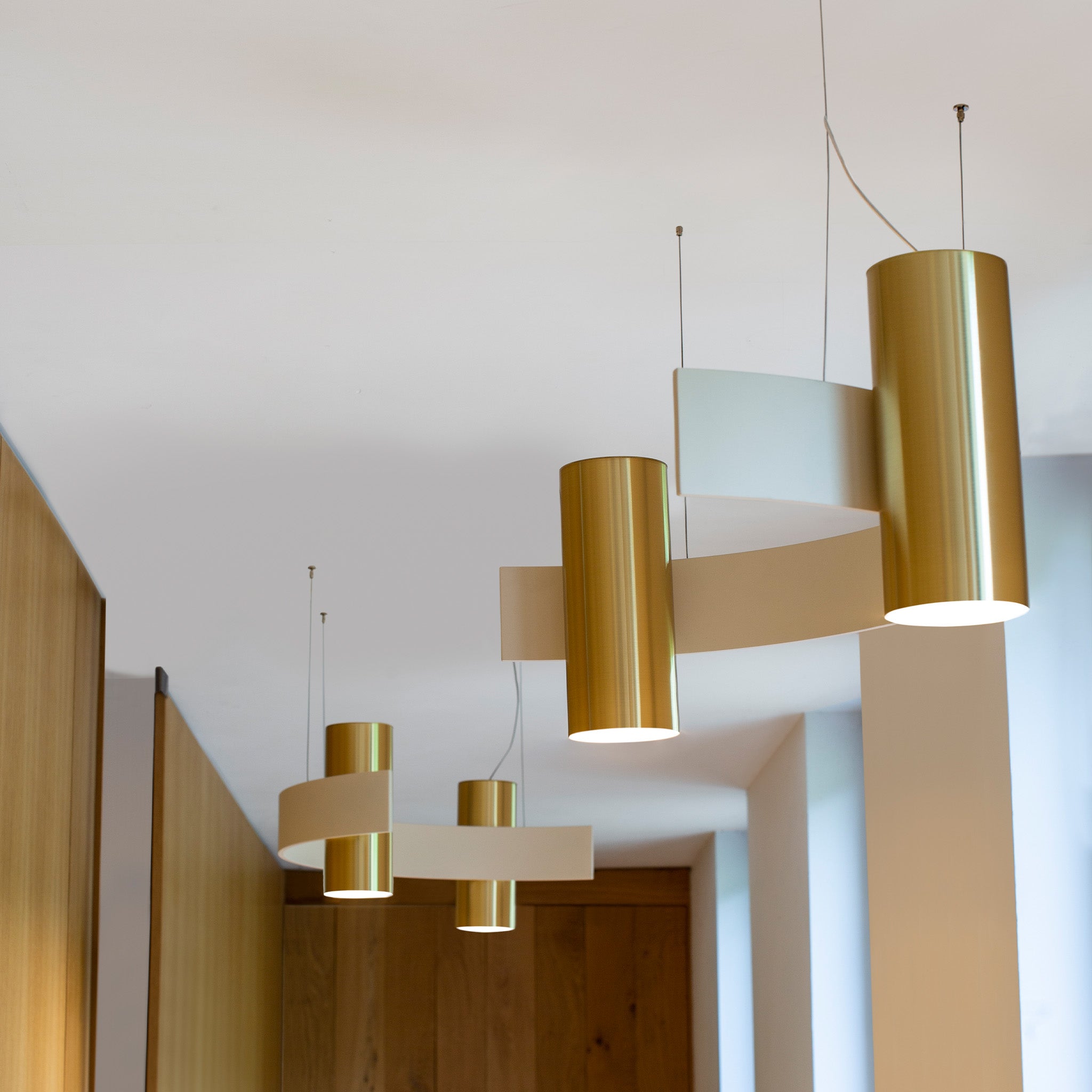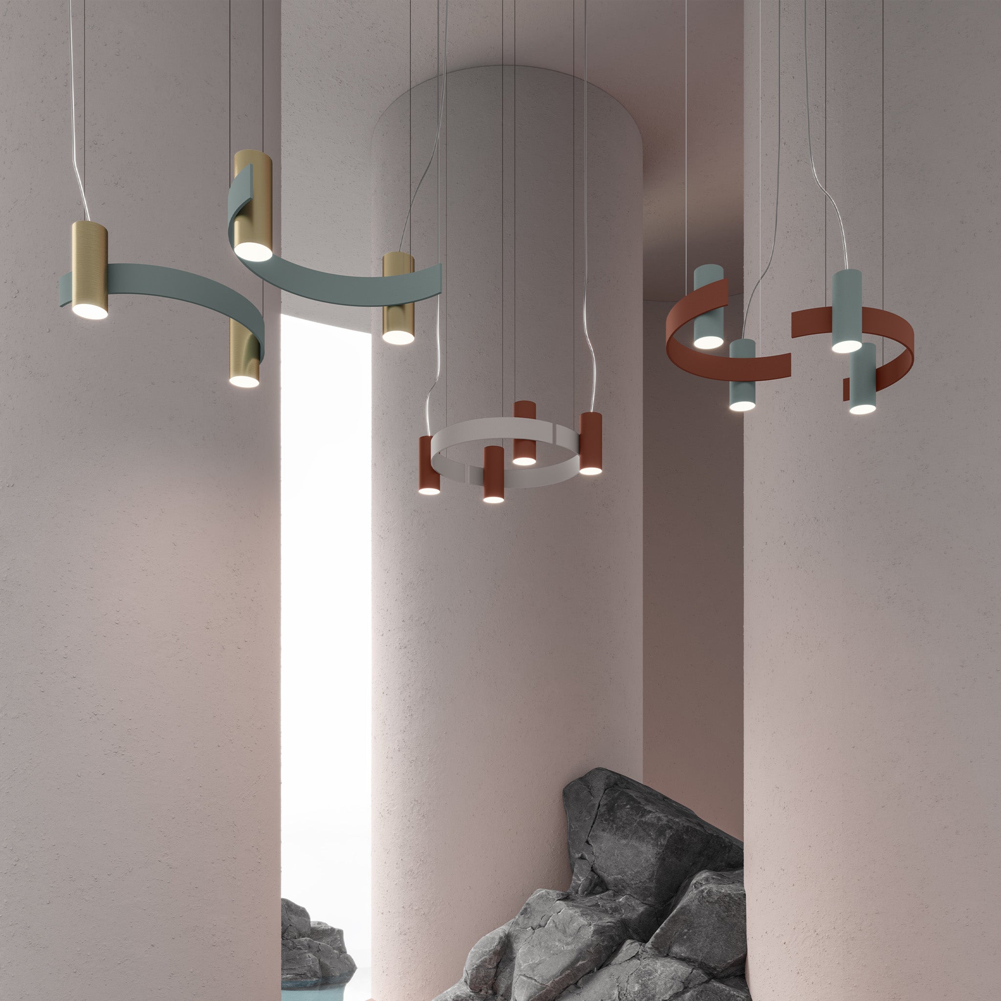 Studiopepe tarafından tasarlanan Nastro, epoksi boyalı alüminyum bir bandın akışkan kıvrımını dengeleyen silindirik ağırlıkla zarif bir görsel uyum yaratıyor. Esnek çizgisiyle mekanda hafifçe süzülen bir izlenim bırakan tasarım, dimlenebilir LED şeridin yumuşak ışığıyla tamamlanıyor. Malzeme dili ve heykelsi duruşu sayesinde Nastro, modern ve şiirsel bir aydınlatma ifadesi sunuyor.