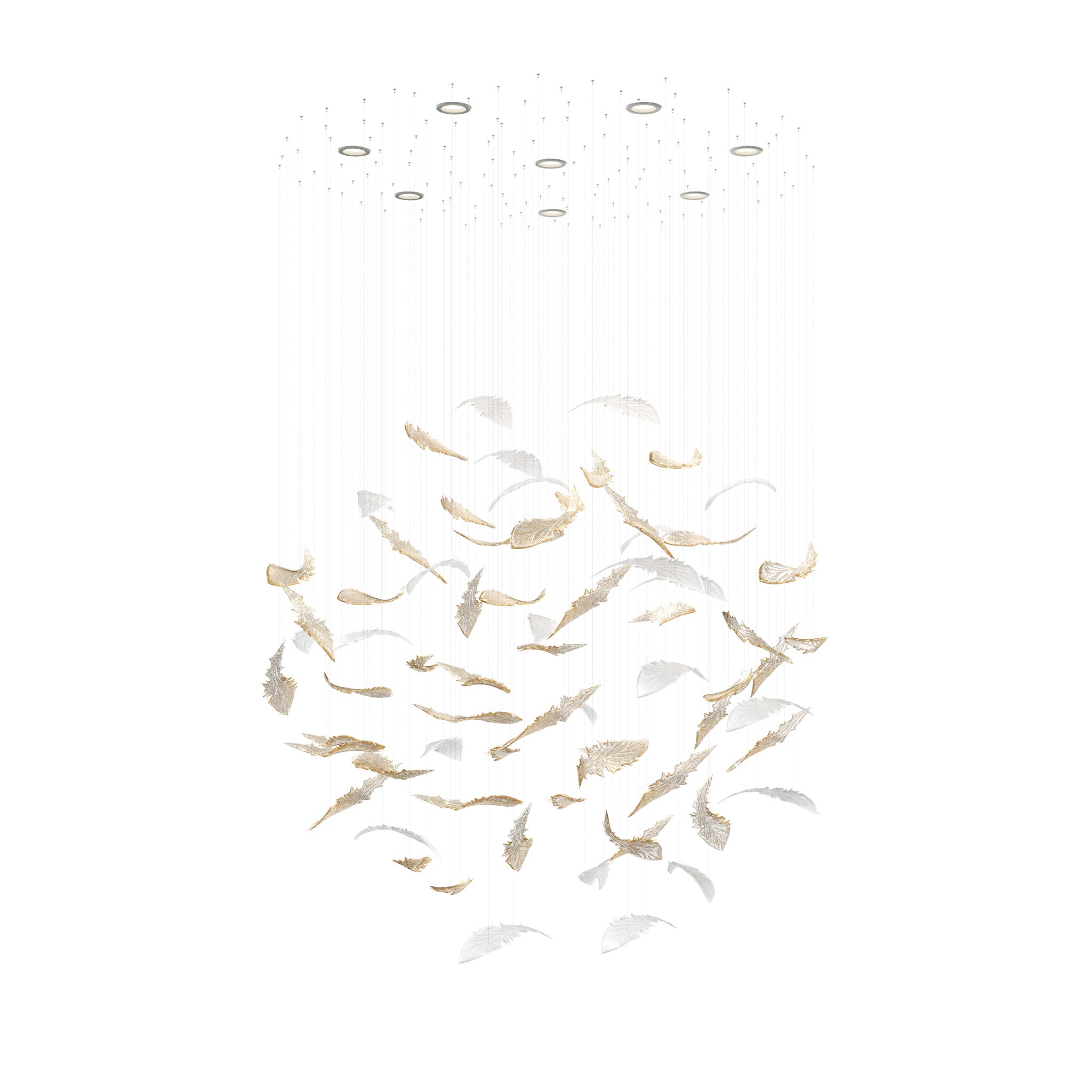 Jiří Krišica’nın tasarımı Nectar, baharın gelişiyle canlanan doğadan ilham alıyor. İnce yaprak formundaki kristal parçalar, ağaçların yeniden filizlendiği ve yaşamın tazelendiği anları yansıtıyor. Doğanın gücünü ve yenilenme enerjisini simgeleyen koleksiyon, mekanlara taze, canlı bir atmosfer kazandırıyor.