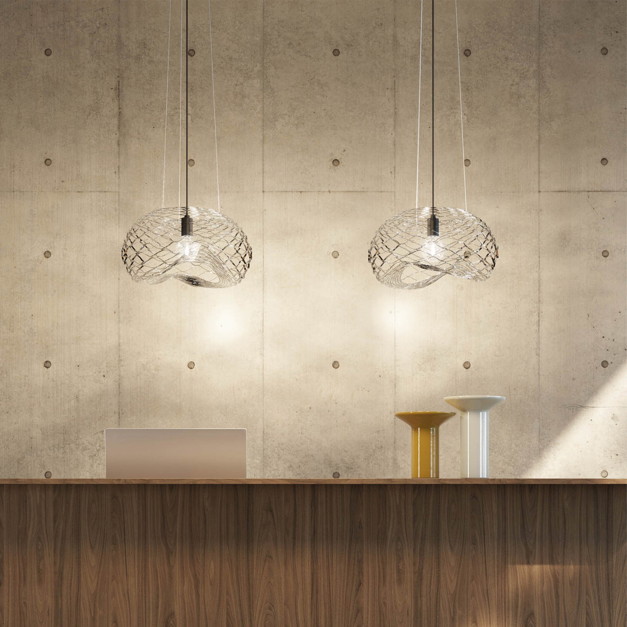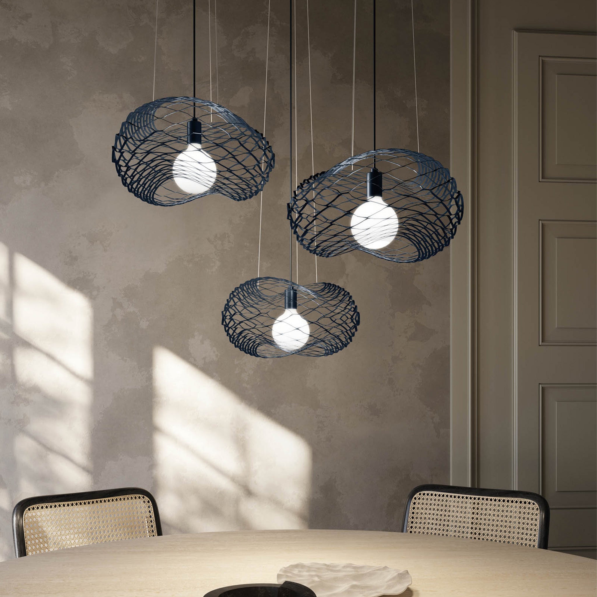 Net, çelikten üretilen heykelsi formuyla mekana güçlü bir duruş katıyor. Lazer kesim yüzeyi ile ışığı zarif desenlerle duvarlara yansıtıyor. Ağ formundaki yapısı ortama derinlik kazandırıyor. Sade ve modern görünümüyle her mekana uyum sağlıyor.