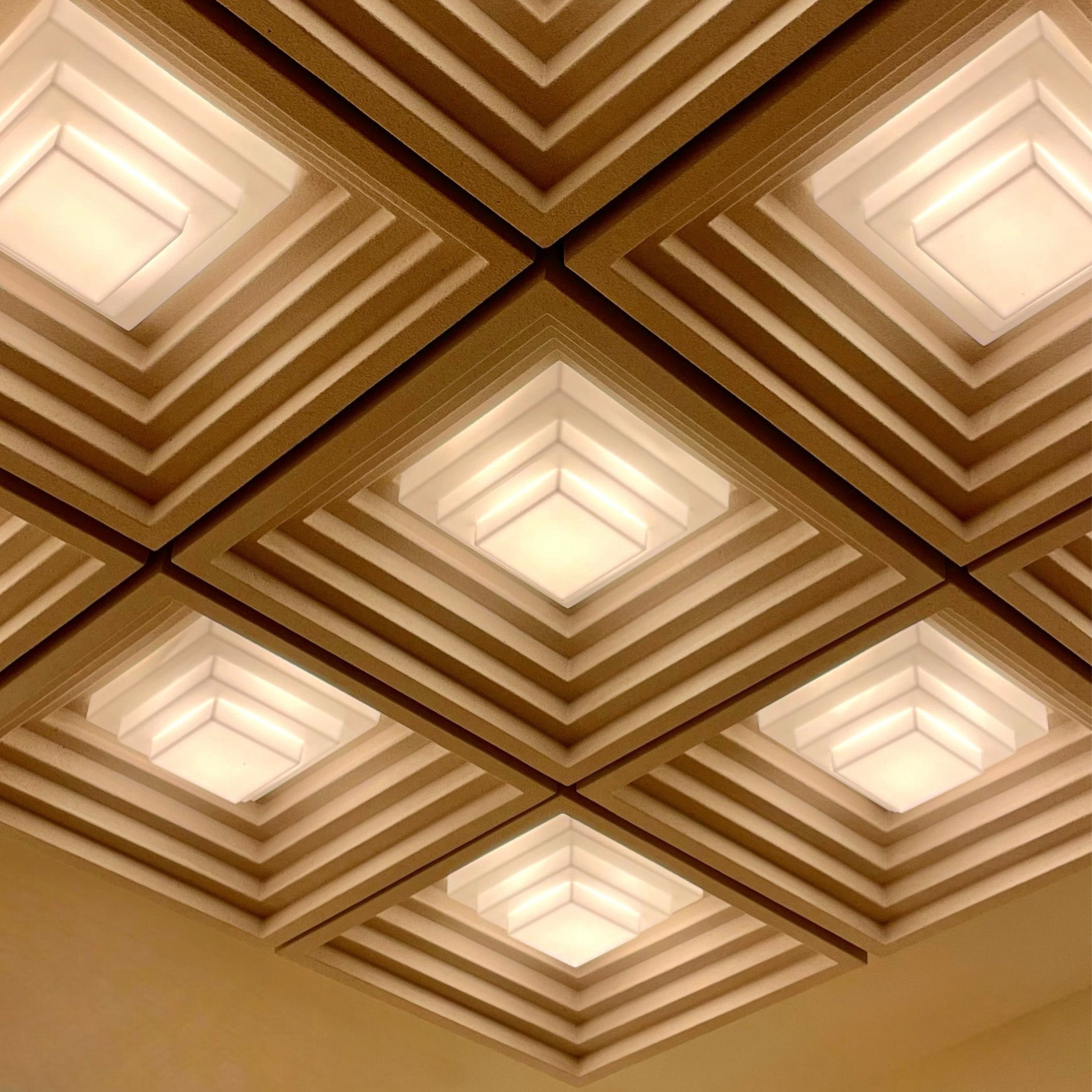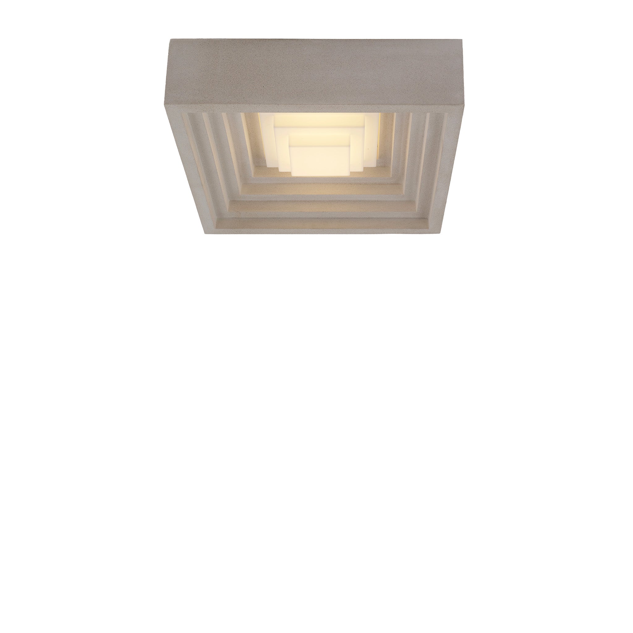 Roma’daki Pantheon’un karakteristik beton tavanından ve brütalist mimarinin sade geometrisinden ilham alan Pantheum el dökümü Jesmonite malzemeyle üretiliyor. Basamaklı kare formu kumlanmış yüzeyiyle doğal bir taş dokusu veriyor. Tek başına kullanılabildiği gibi simetrik kümeler halinde yerleştirilerek tavan ya da duvarda etkileyici bir ışık düzeni oluşturuyor.