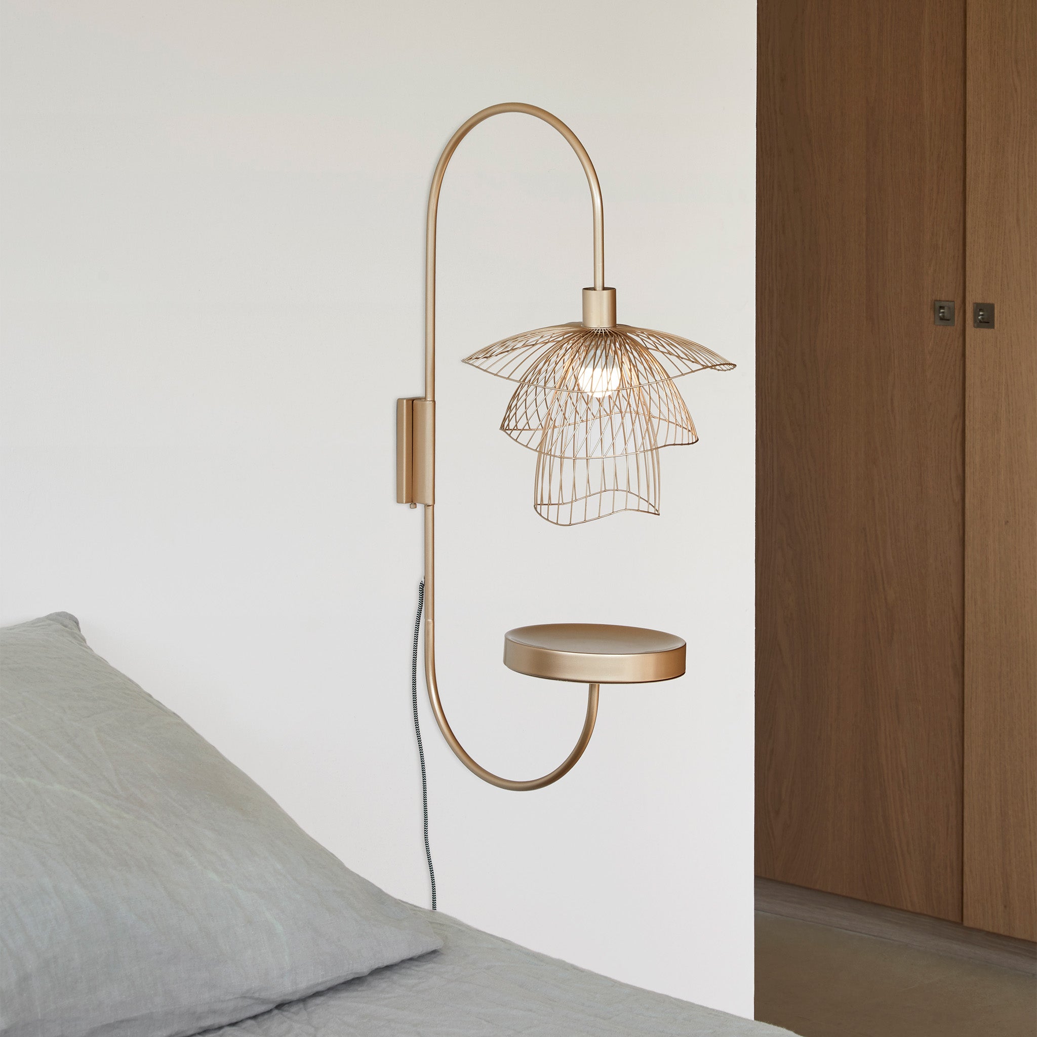 Élise Fouin’in tasarladığı Papillon duvar apliği, zarafetle hareketin çizgisel bir dansını sunuyor. Üst üste yerleştirilen üç metal çerçeveden oluşan yapısı, ince tellerin kıvrımıyla kelebek kanatlarını andıran kinetik bir etki yaratıyor. Hem işlevsellik hem estetik sunan Papillon, modern duvarlara hafif ama çarpıcı bir dokunuş kazandırıyor ve mekânın atmosferini değiştiriyor.