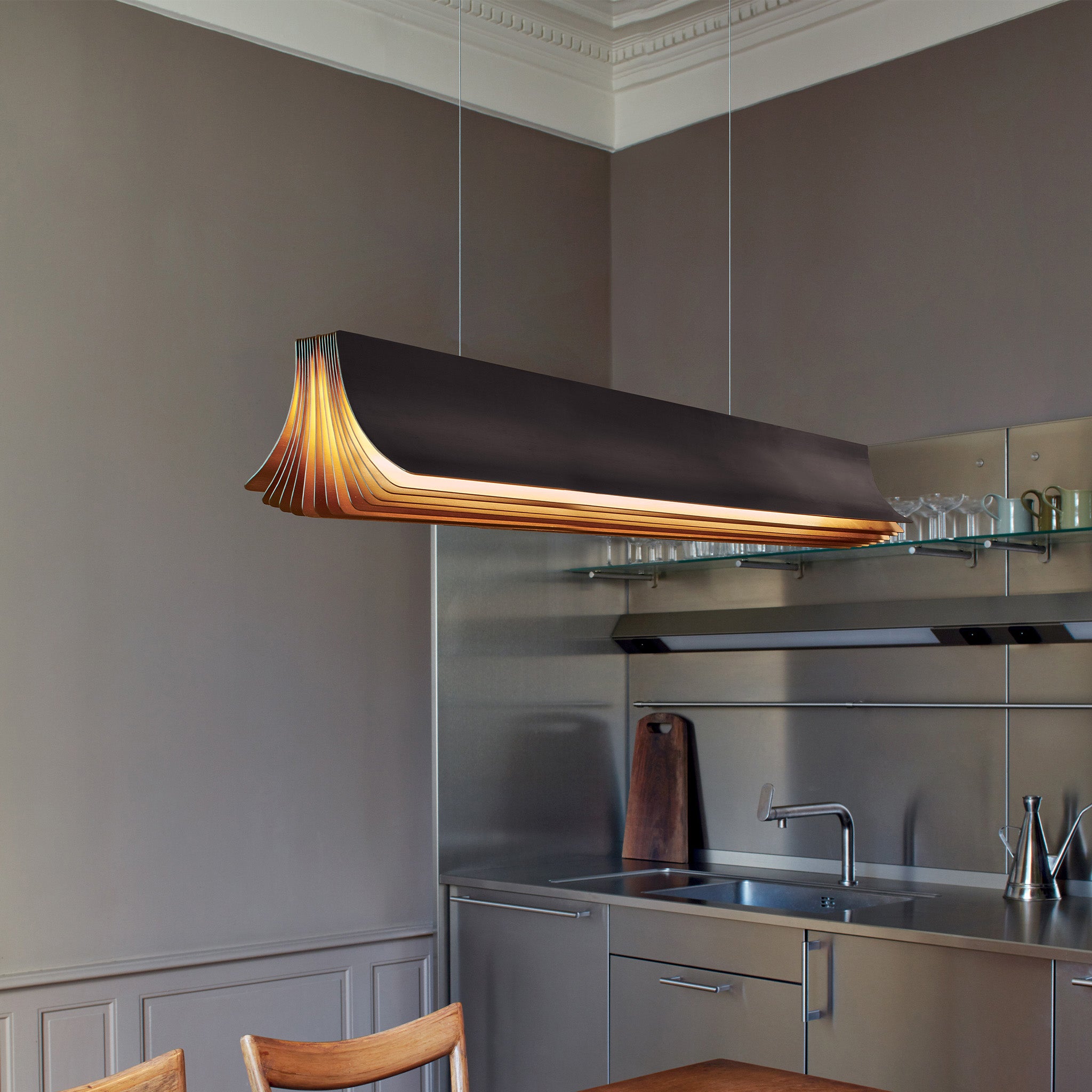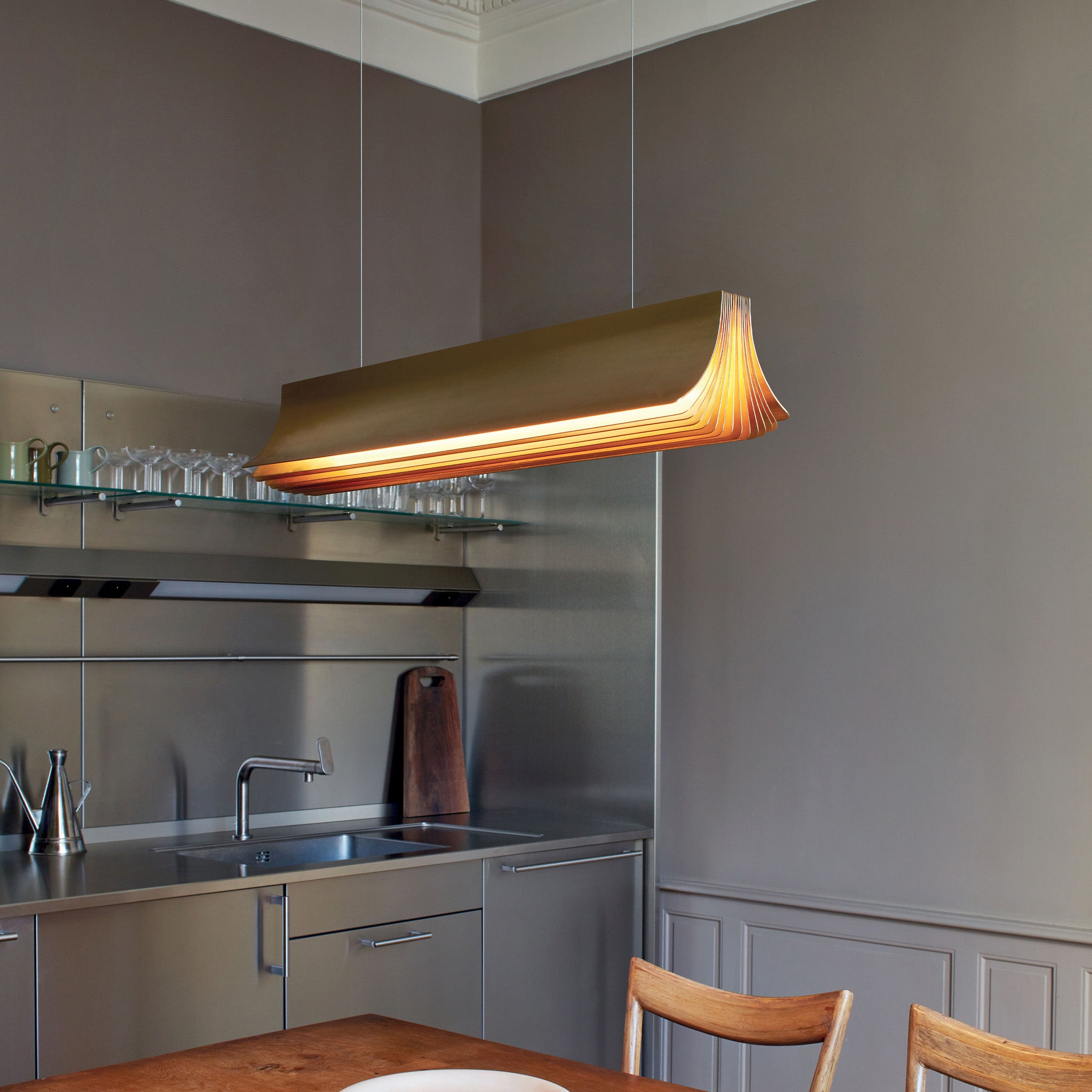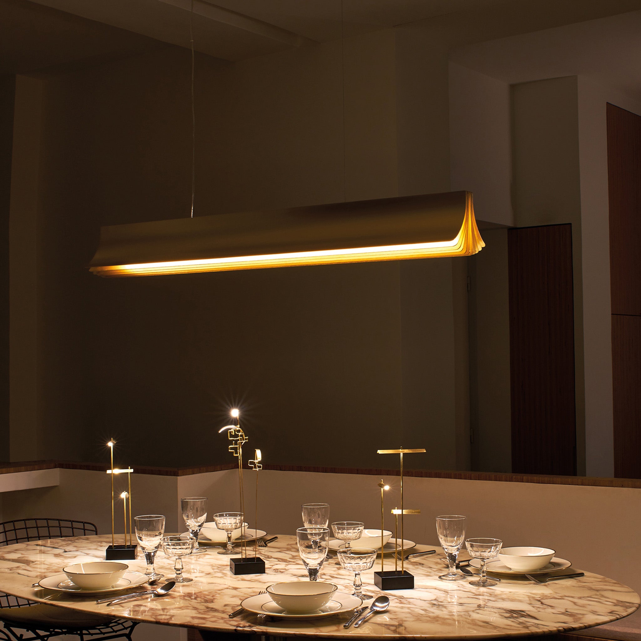 Philippe Nigro’nun tasarımı Respiro sarkıt, hafifliği ve sıcaklığı bir araya getirerek mekana davetkâr bir atmosfer kazandırıyor. Anodize alüminyum yüzeyiyle ışığı yumuşak bir şekilde yansıtan form, uzun yapısıyla masalar ya da yaşam alanları üzerinde dengeli bir aydınlatma sağlıyor. İnce detayları ve zarif kıvrımıyla Respiro sarkıt, ışığı sadece yayan değil, duygusal bir bağ kuran bir obje haline getiriyor.